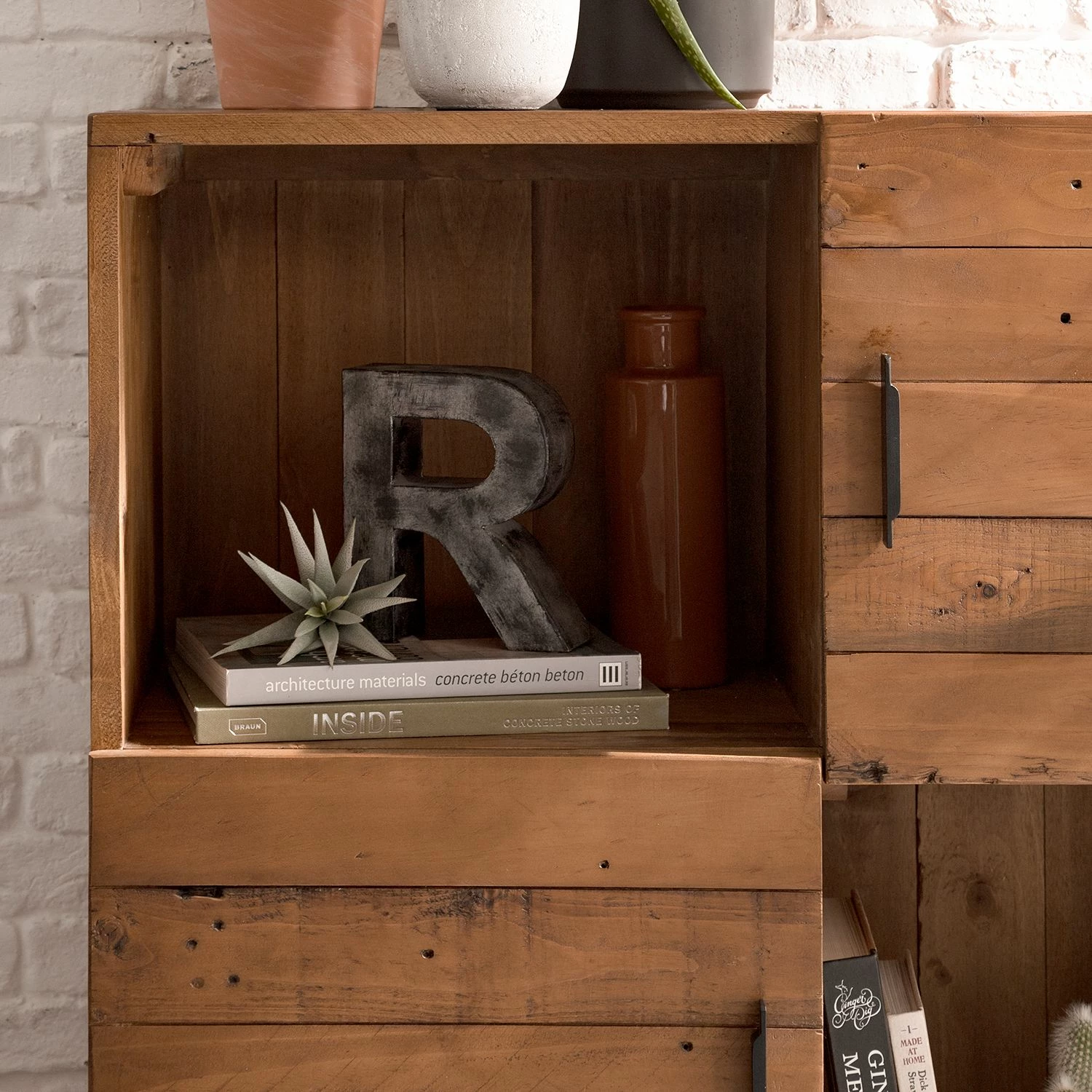 - Front & Korpus: Altholz Pinie, lackiert