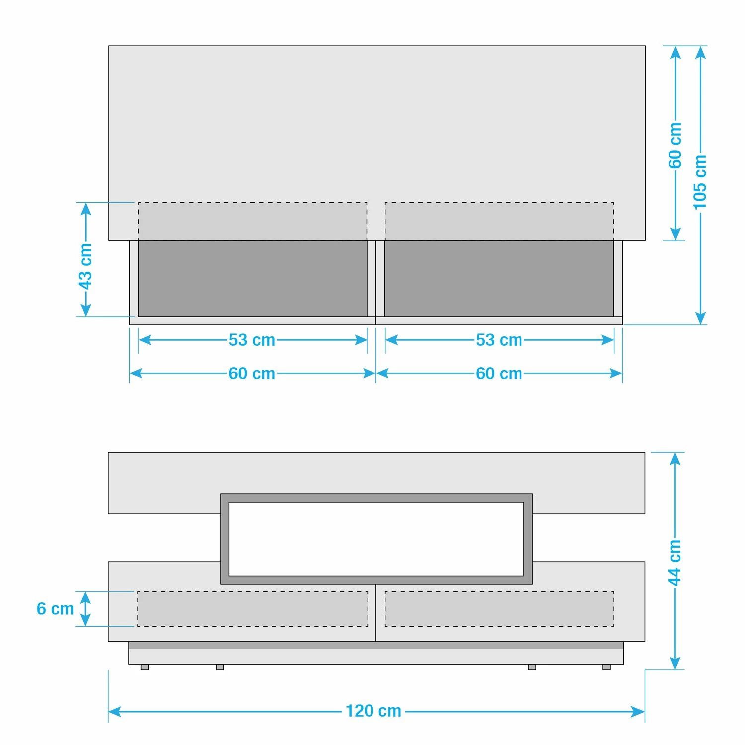 Dieses Hochglanzmöbel in Weiß mit dunkelgrauen Absetzungen bietet alle funktionalen Details, die von einem Couchtisch erwartet werden: eine große Ablagefläche für Fernbedienungen, Lektüre etc. sowie viel zusätzlichen Stauraum in den offenen Fächern und in den Schubkästen. Aber der Couchtisch Anna ist nicht nur großzügig dimensioniert und praktisch für die tägliche Nutzung, sondern er ist dank seiner modernen, geometrischen Formgebung ein Designobjekt mit dem Potenzial, zum Blickfang des Wohnzimmers zu werden. Die hochwertige Gestaltung des Couchtischs Anna wird abgerundet durch die Verwendung von formstabilem, langlebigem MDF-Material, das sorgfältig lackiert wurde.