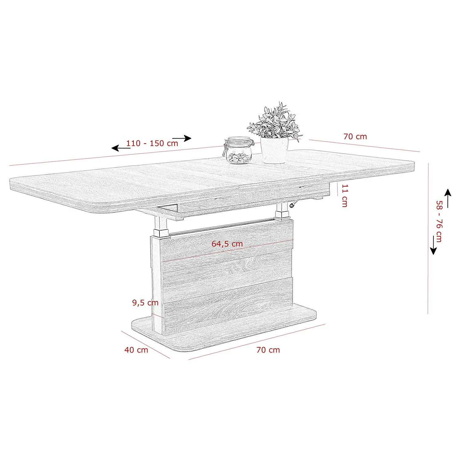 - Breite: 110 – 150 cm