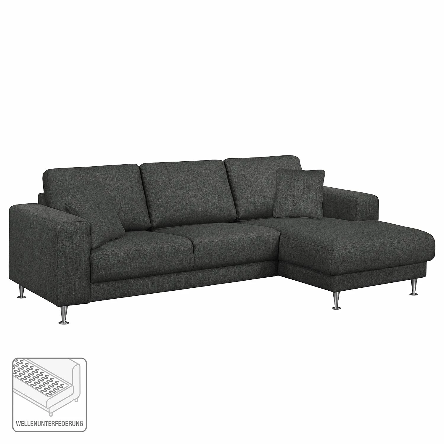 Fredriks Ecksofa Arietta II Strukturstoff – Anthrazit – Longchair davorstehend rechts