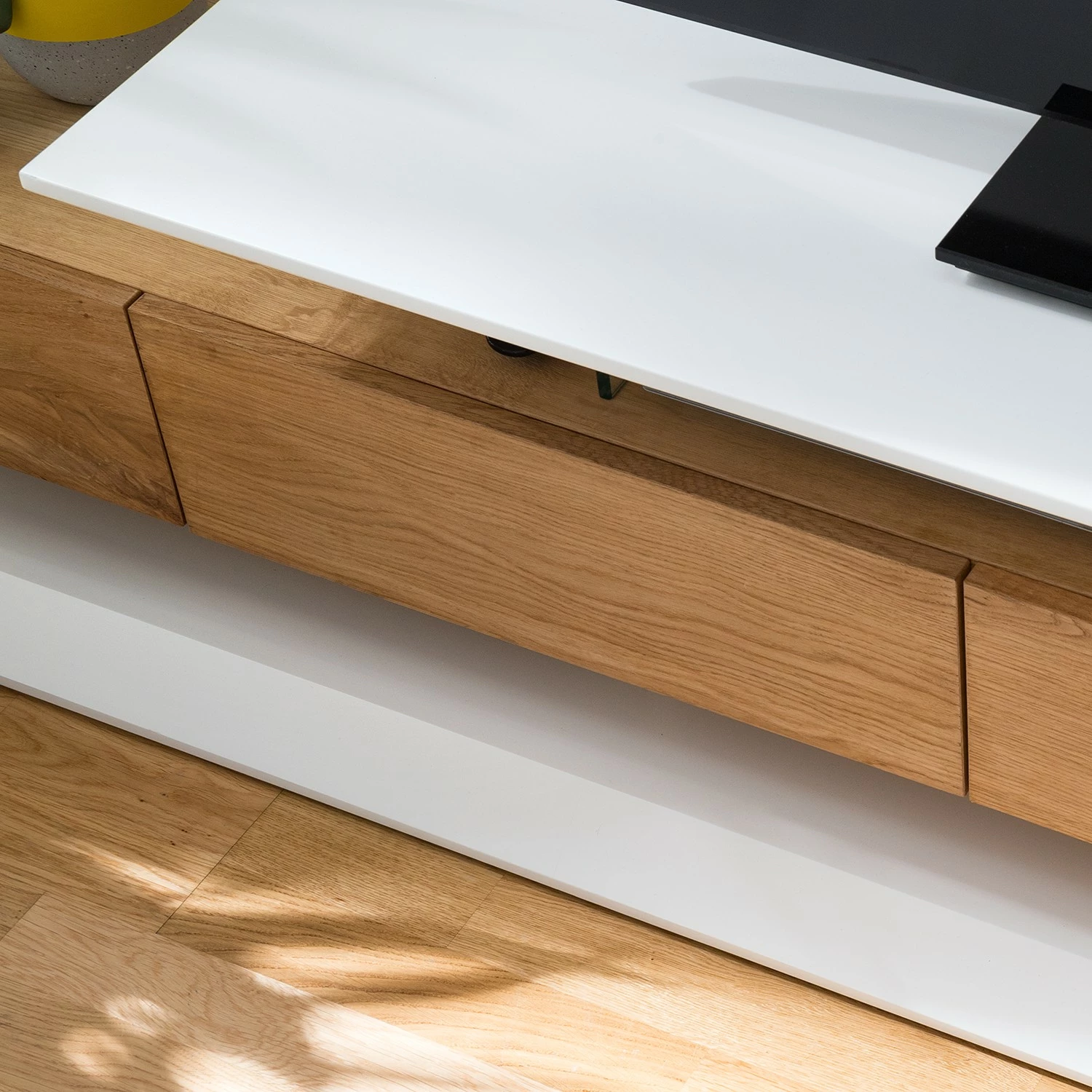 - Schubladen: MDF (Mitteldichte Holzfaserplatte), furniert
