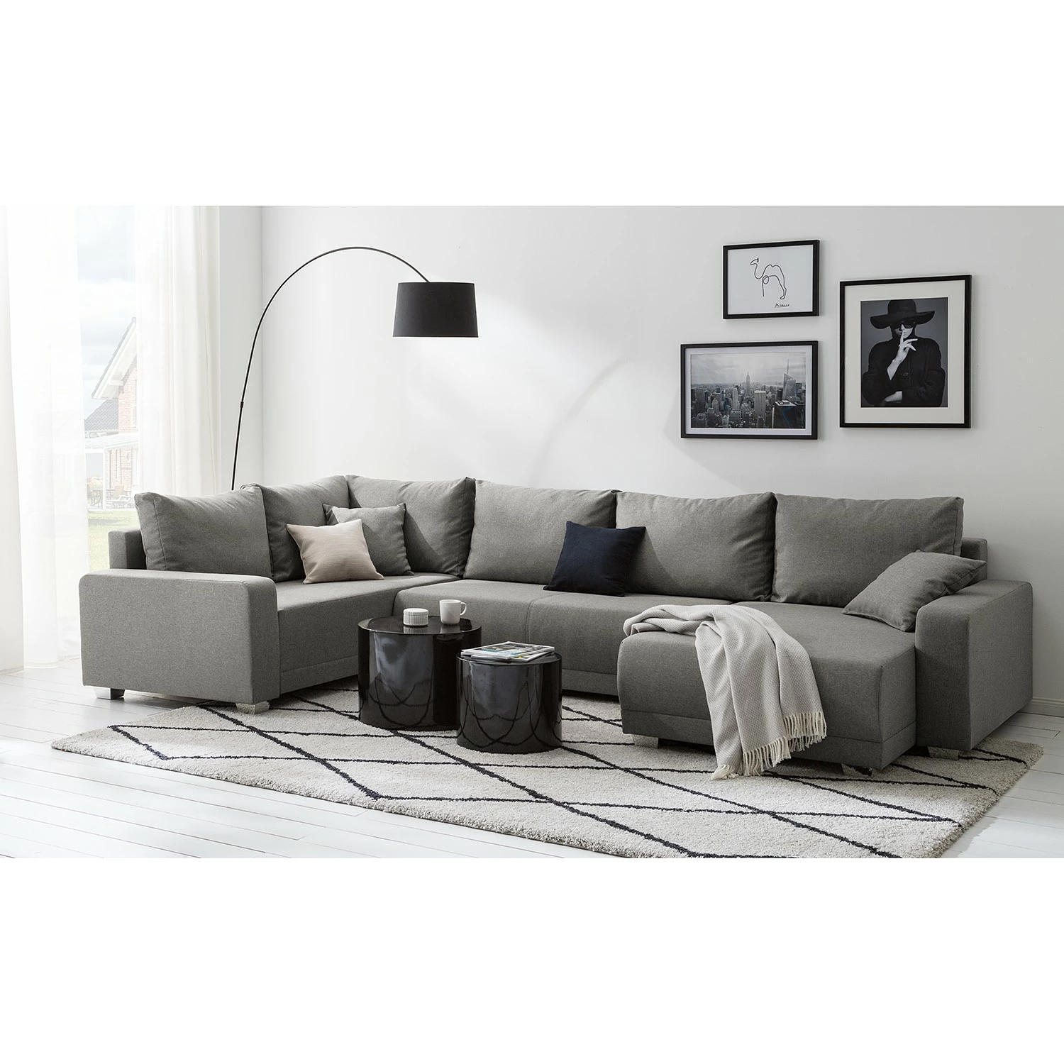 - Durch den Rundumbezug ist die Wohnlandschaft beliebig frei im Raum umstellbar.