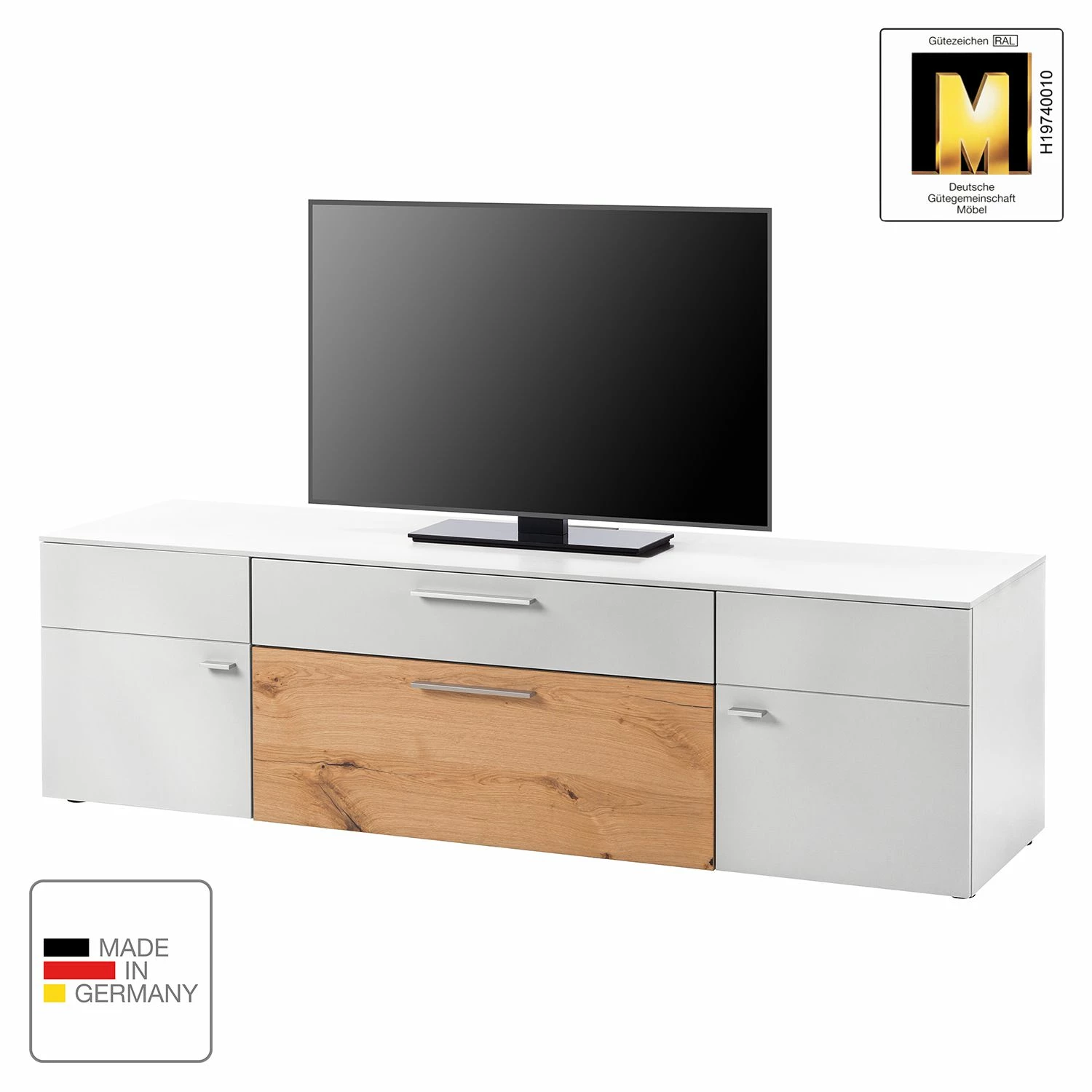 - Front & Korpus: MDF (Mitteldichte Holzfaserplatte), lackiert
