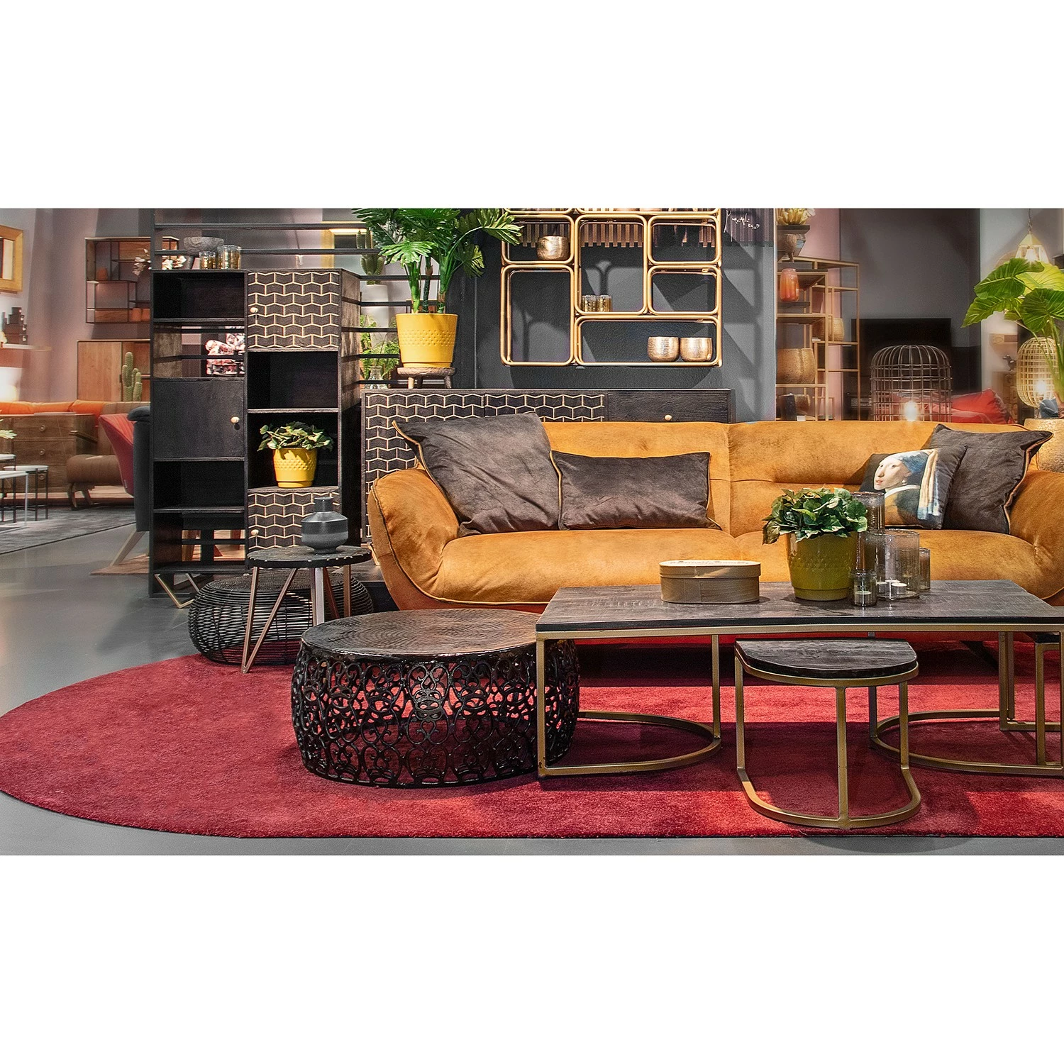 Jack & Alice Highboard Towe – Akazie massiv / Metall – Schwarz / Gold
