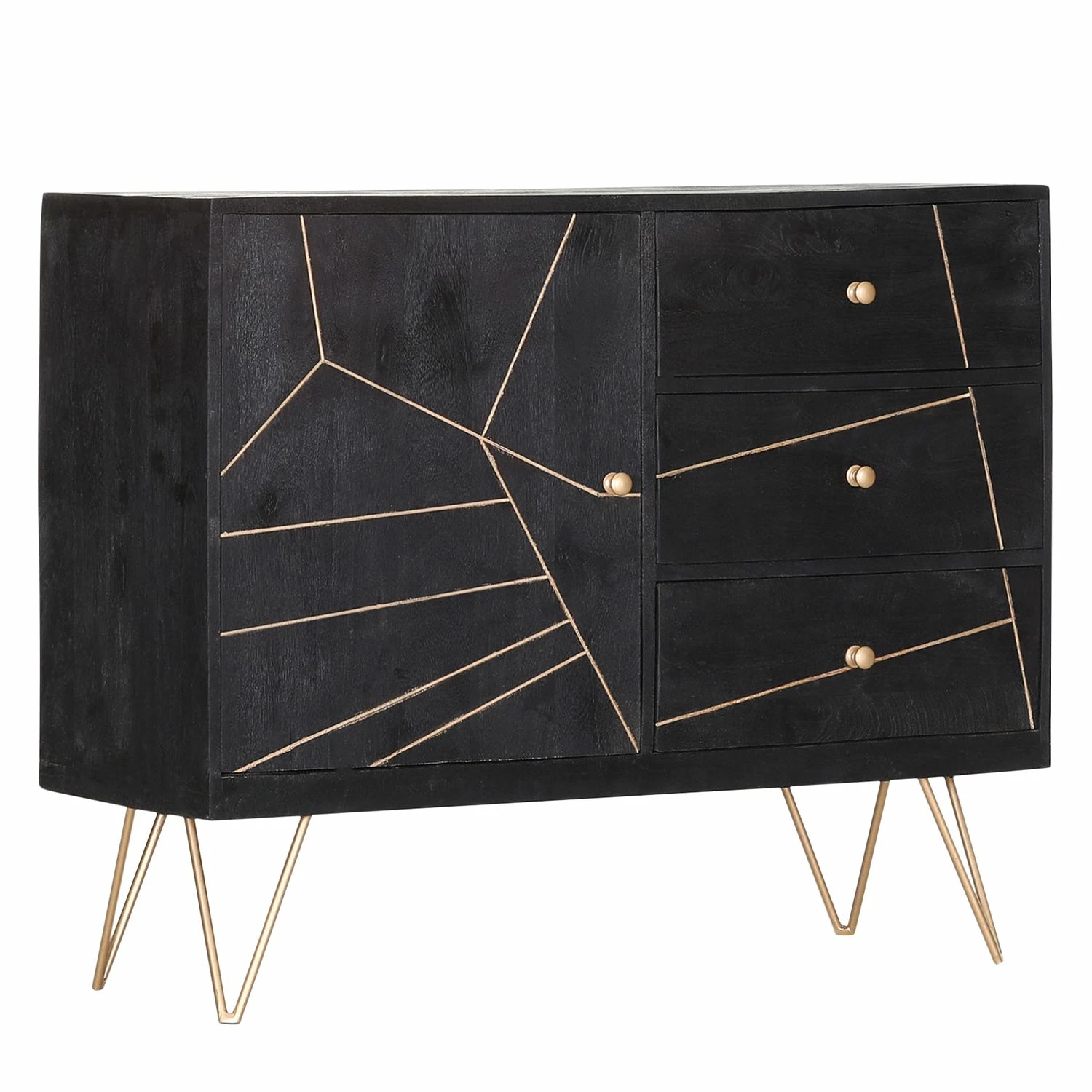 - Front & Korpus: Schwarz mit goldfarbenen Einfräsungen