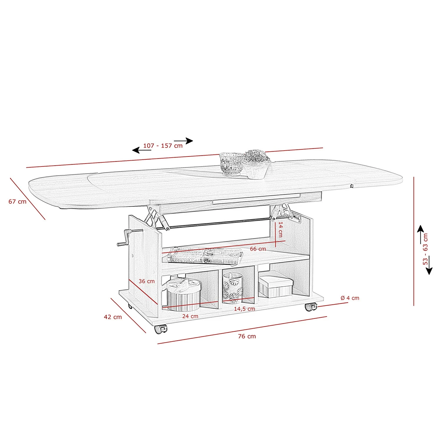 - Weitere Maße: Breite: 107 – 157 cm