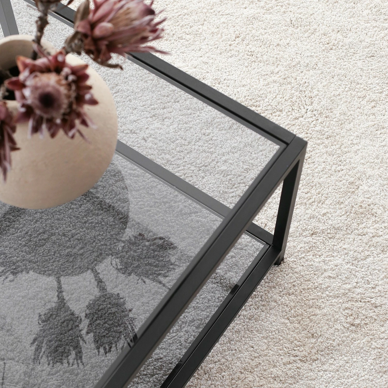 - Tischplatte & Ablage: Glas