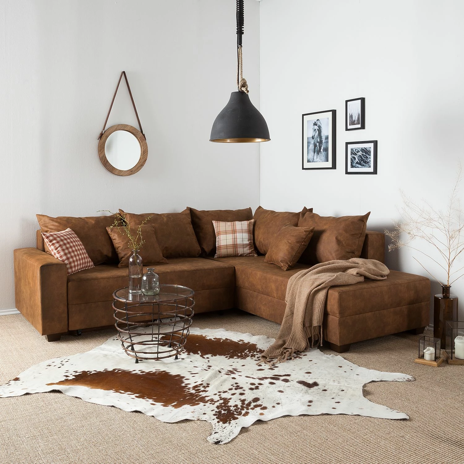 - Lieferumfang: Ecksofa inkl. 5 Rücken- & 2 Zierkissen, ohne Dekoration