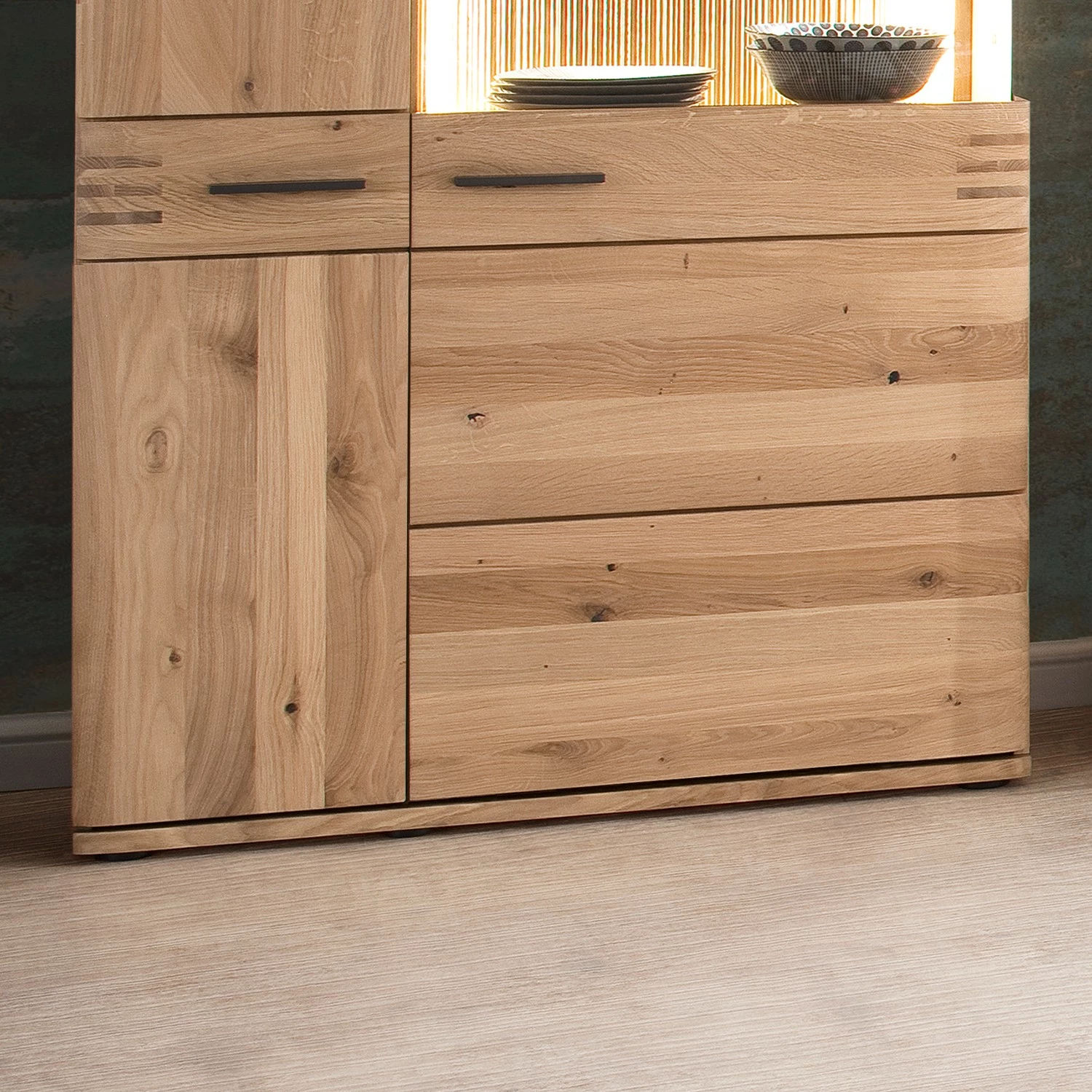 - Front: Massivholz Eiche, geölt