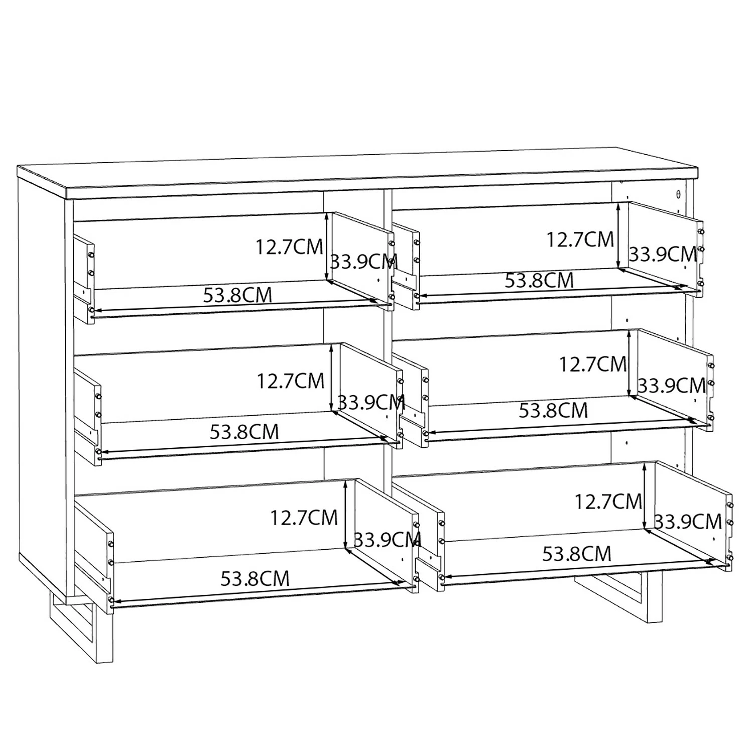 - Innenmaße Schubladen: 53.5 x 33.5