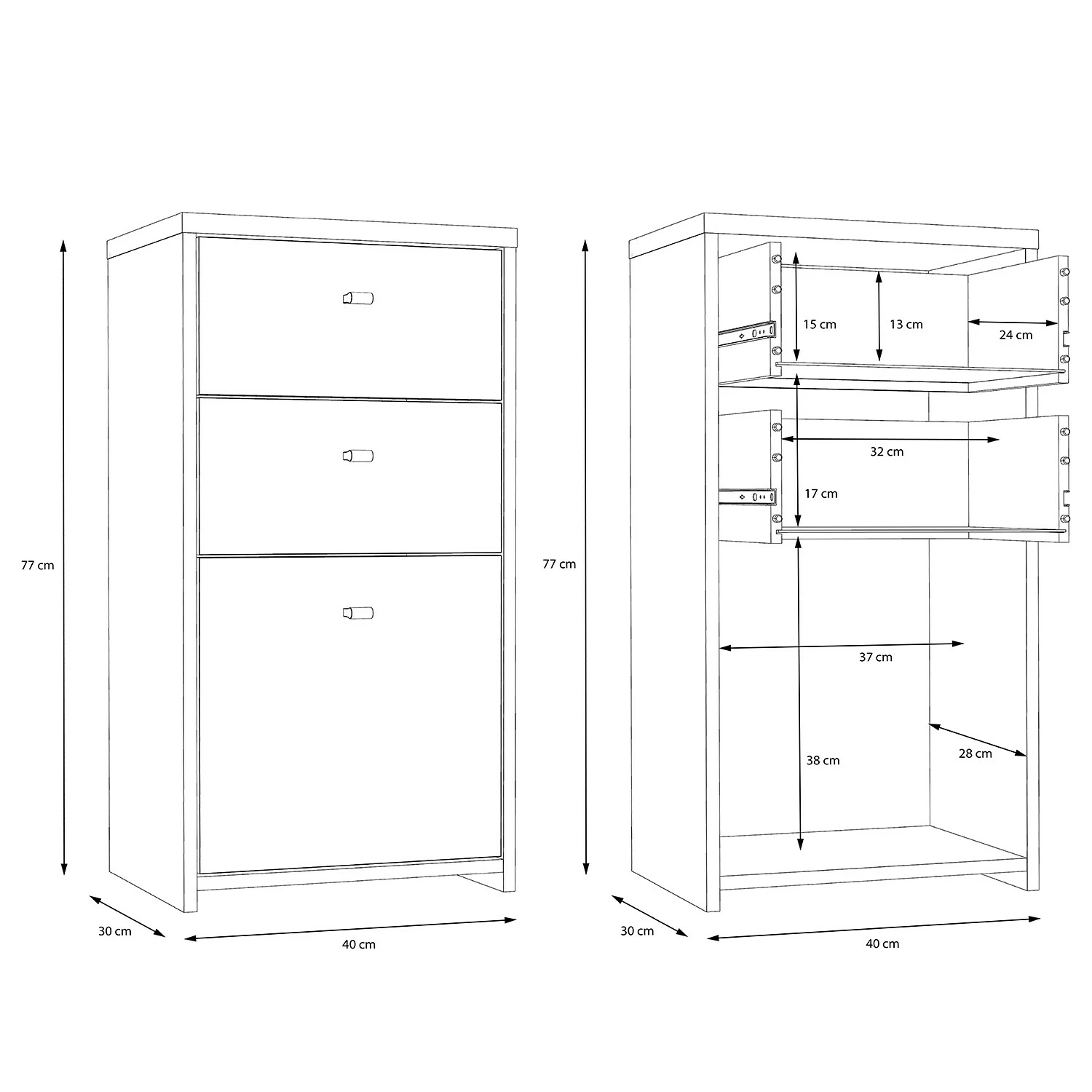 - Innenmaße Schubladen: je 31,5 x 23,8 cm (BxT)
