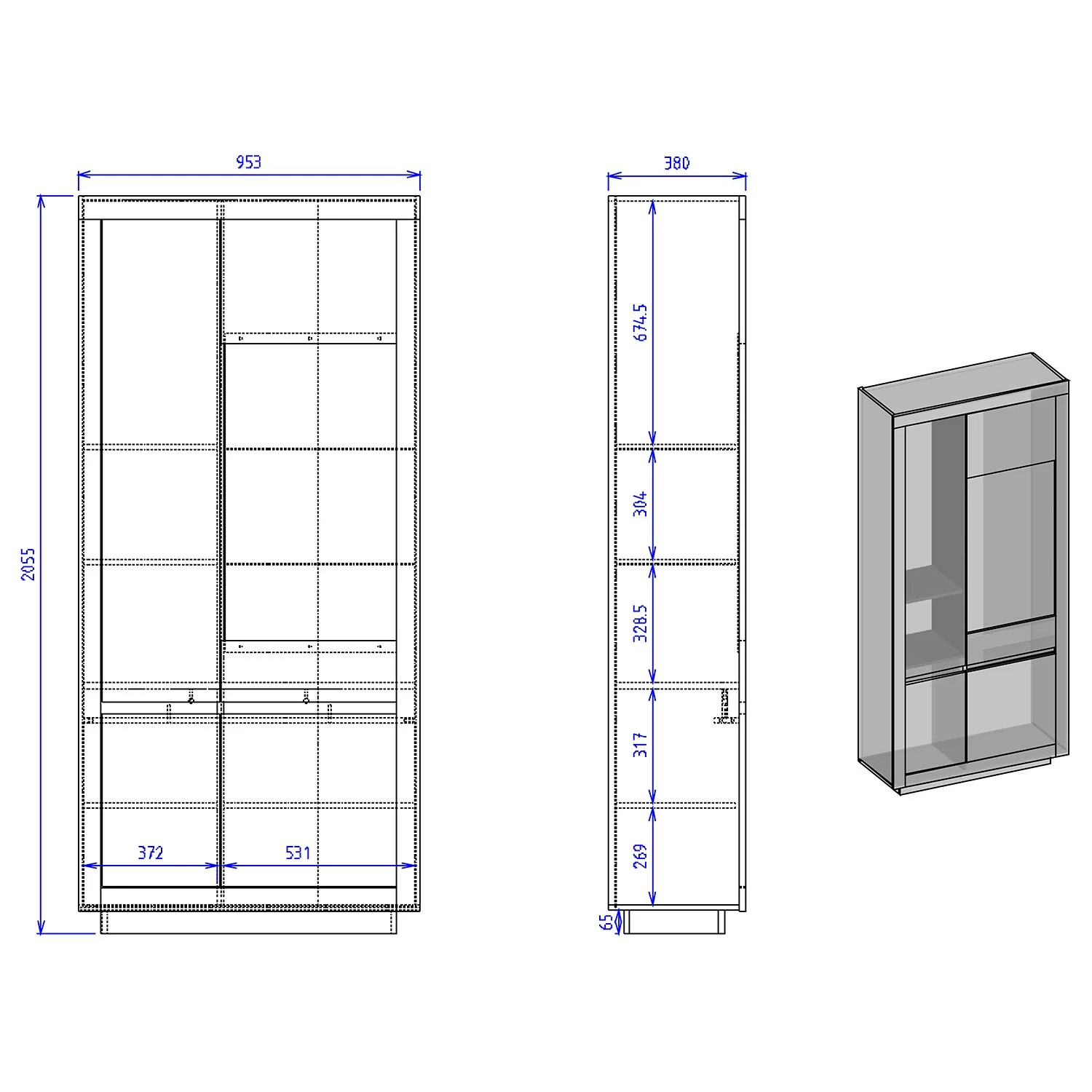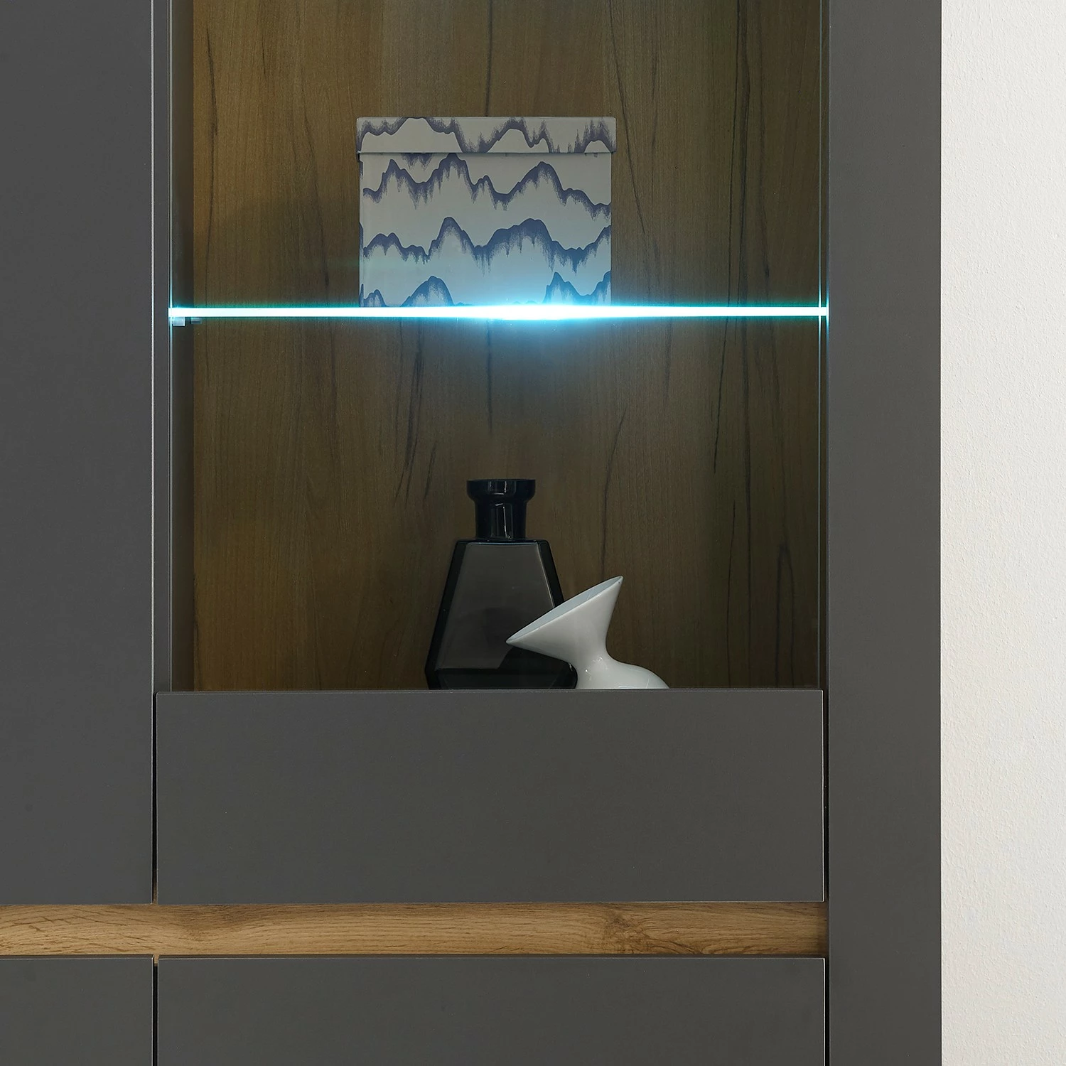 - Lieferumfang: Vitrinenschrank ohne Beleuchtung & Dekoration