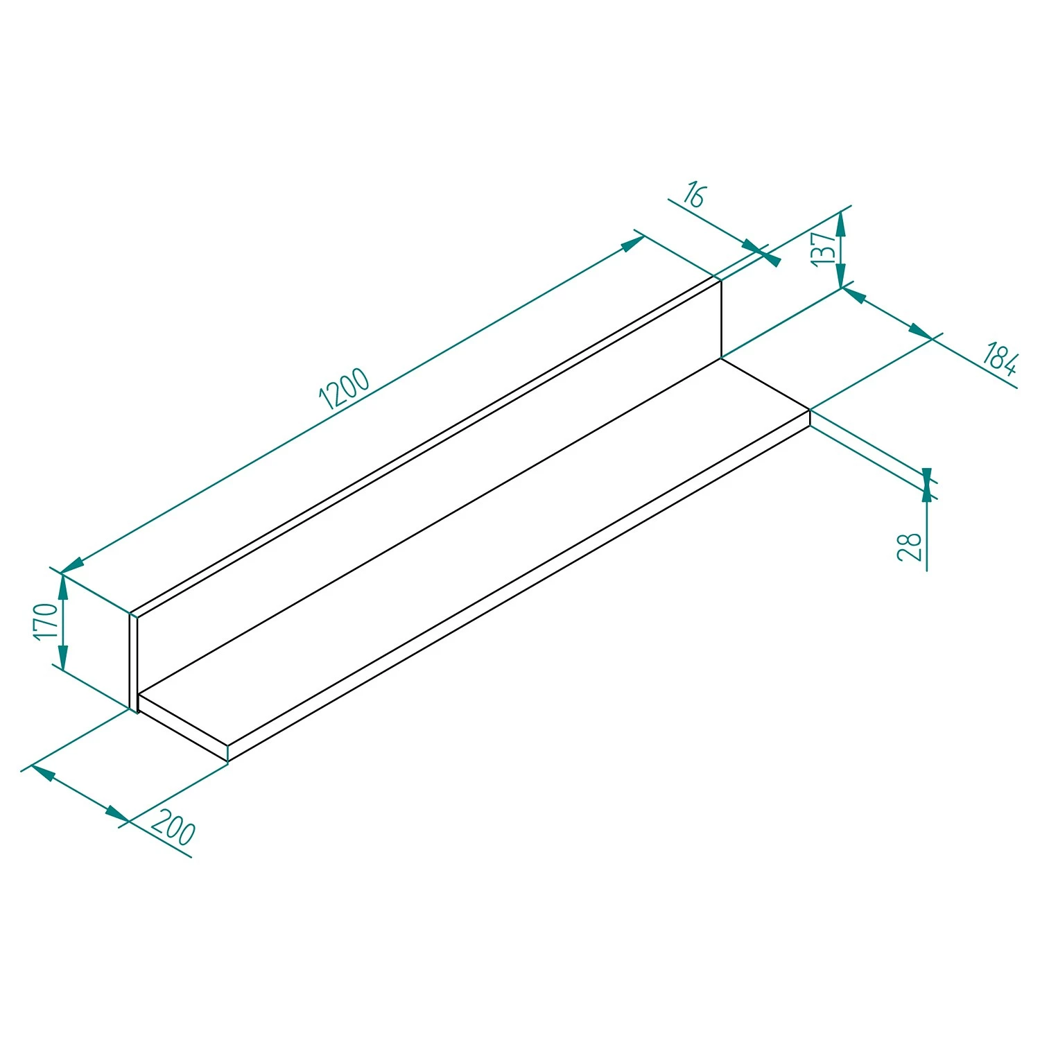 • Wandboard: je 170 x 17 x 20 cm