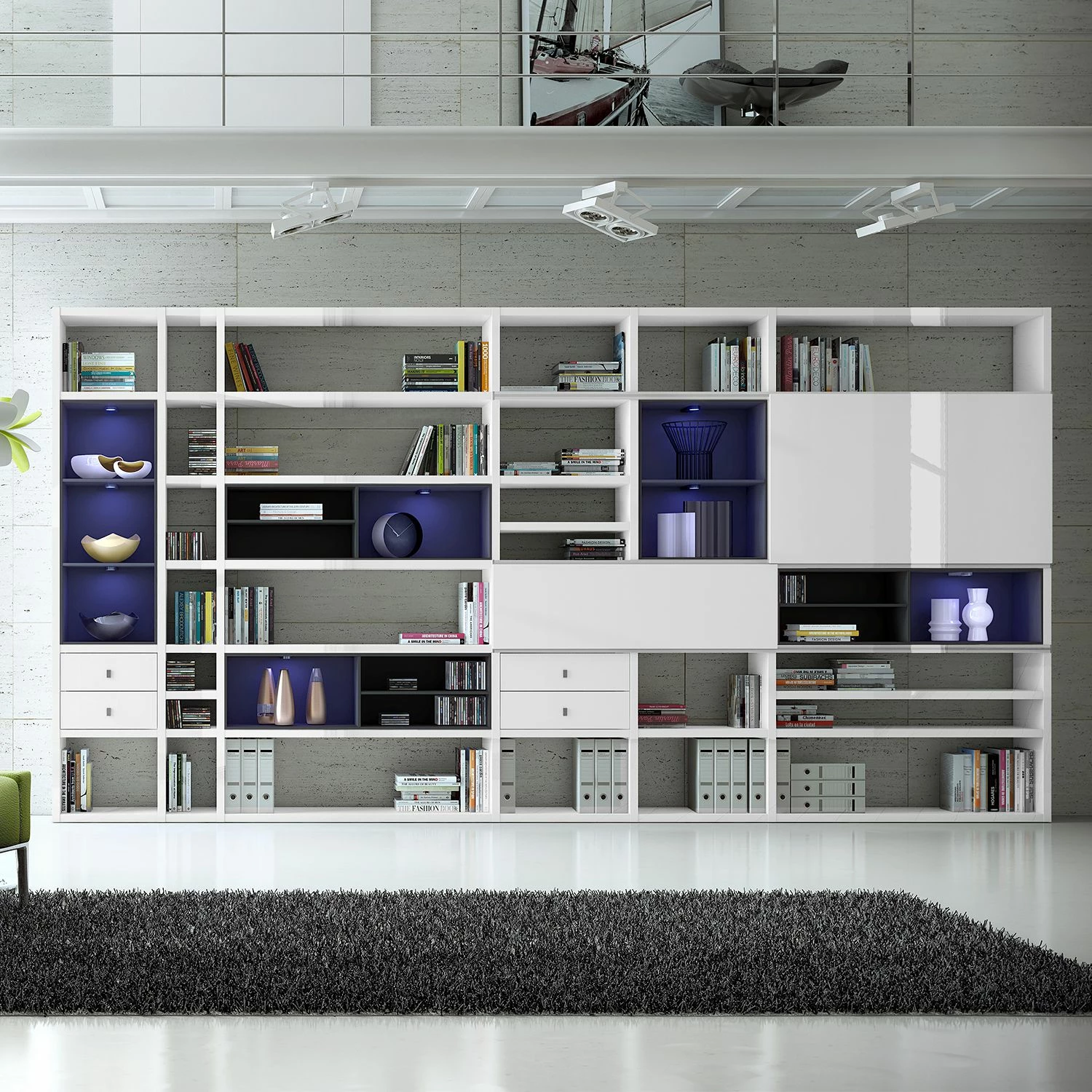 - Lieferumfang: XXL Regalwand ohne Dekoration