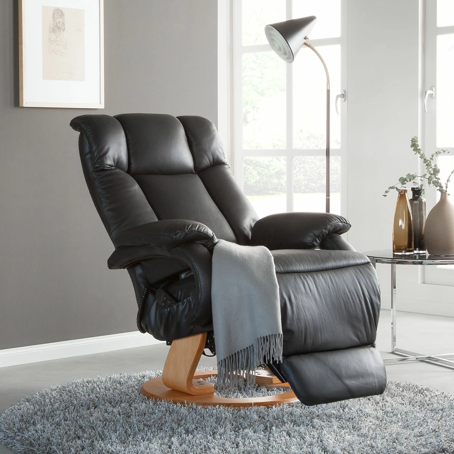 Auf der Suche nach einer bequemen Sitzmöglichkeit für entspannte Stunden werden Sie bei uns mit diesem schwarzen Fernsehsessel fündig. Kombiniert mit einem TV- und Mediaschrank im klassischen Stil ergänzen Sie Ihre Wohnungseinrichtung mit diesem Sessel stilsicher. Hergestellt ist er aus Kunstleder und Echtleder. Das praktische Kunstleder hat folgenden Vorteil: Es verspricht eine lange Lebensdauer. Darüber hinaus genießen Sie dank der Polsterung aus Schaumstoff einen hohen Komfort.