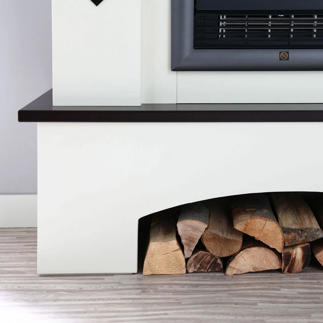 Kaminfeuer in den eigenen vier Wänden – das ist der Traum vieler Menschen. Mit dem Elektrokamin Calabria von Montreux kannst Du diesen Traum Wirklichkeit werden lassen. Der Elektrokamin ist in Anlehnung an einen Kachelofen konzipiert und sorgt mit seinem Farbmix in Creme und Havannabraun für einen stimmungsvollen Kontrast, der zum stundenlangen Verweilen einlädt. Rautenförmige Absetzungen verleihen dem Elektrokamin etwas Besonderes. Ein cleveres Extra: an den Seiten des Kamins sind praktische Regale eingebaut, sodass Du ihn gleichzeitig als Stauraummöbel nutzen kannst.
