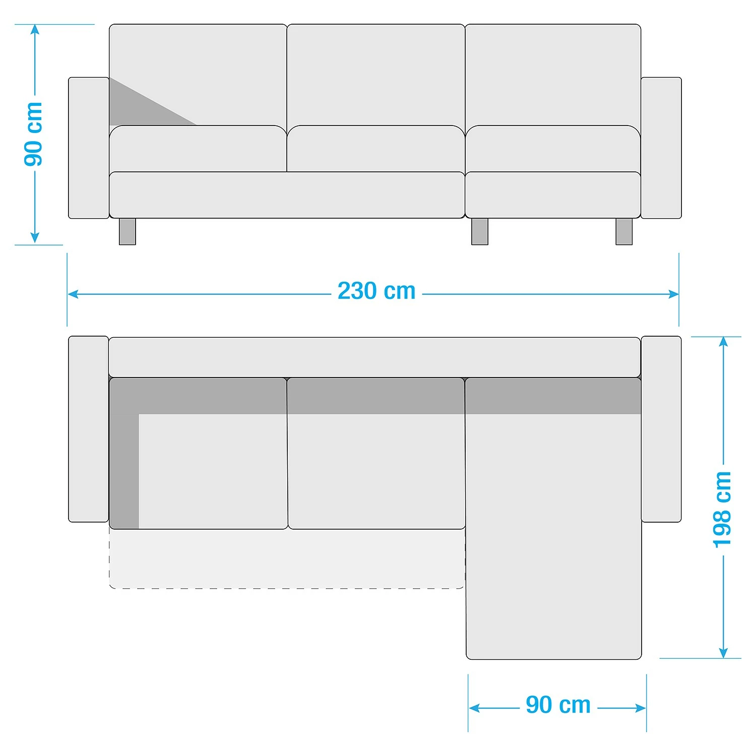 - Tiefe Ottomane: 198 cm