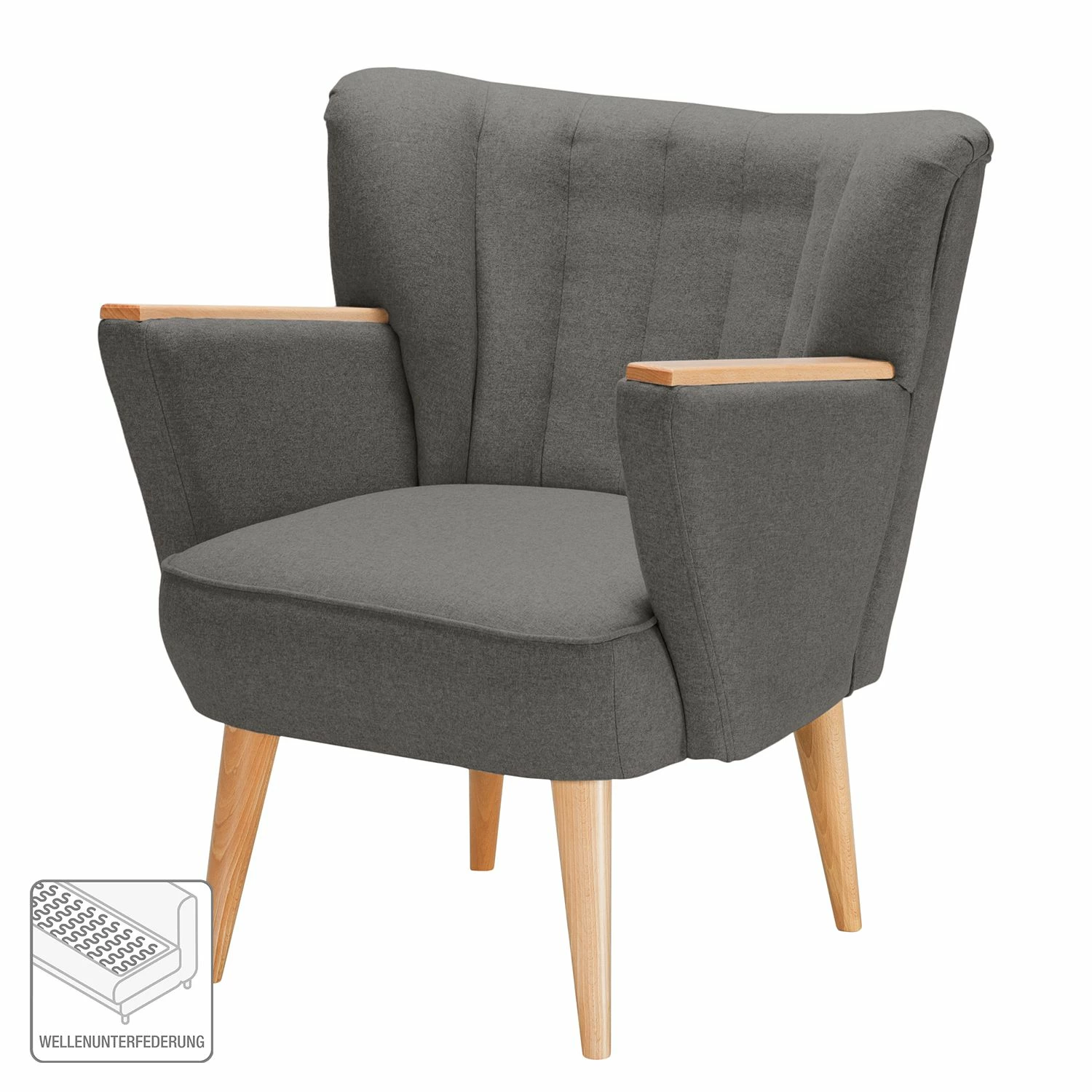 - Füße & Armlehnen: Massivholz Buche