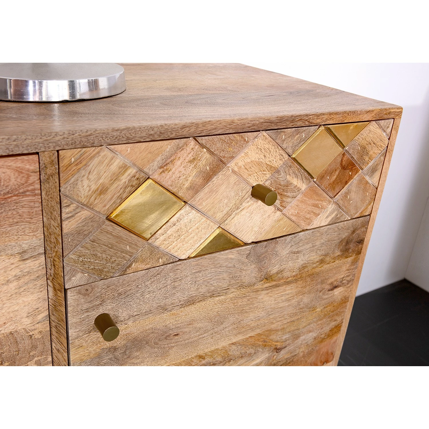 - Front & Korpus: Massivholz Mango, gebeizt & lackiert