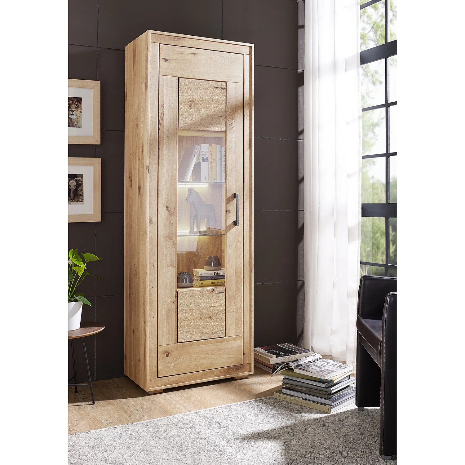 Naturoo Vitrinenschrank Juillan – Wildeiche massiv / Metall – Wildeiche / Schwarz
