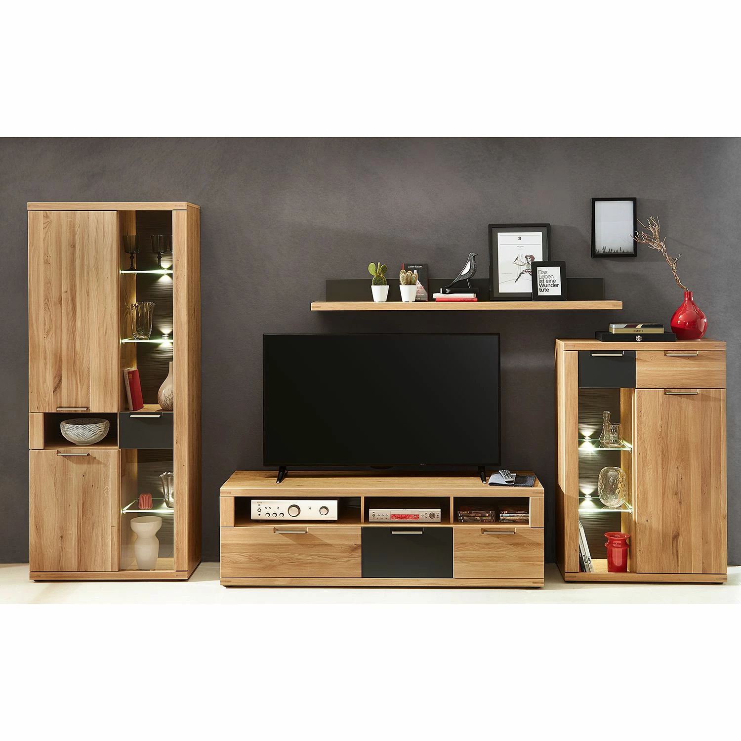 - Lieferumfang: Vitrinenschrank inkl. Beleuchtung, ohne Dekoration