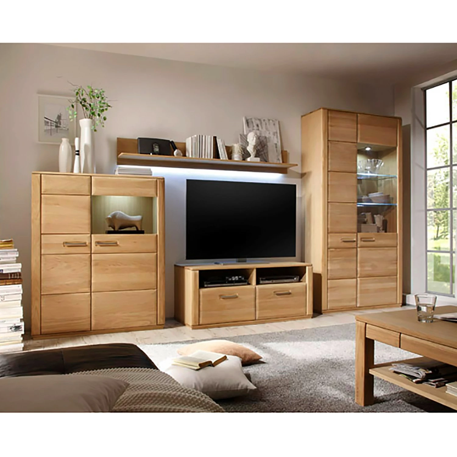 - Lieferumfang: 4-teilige Wohnwand ohne Beleuchtung & Dekoration