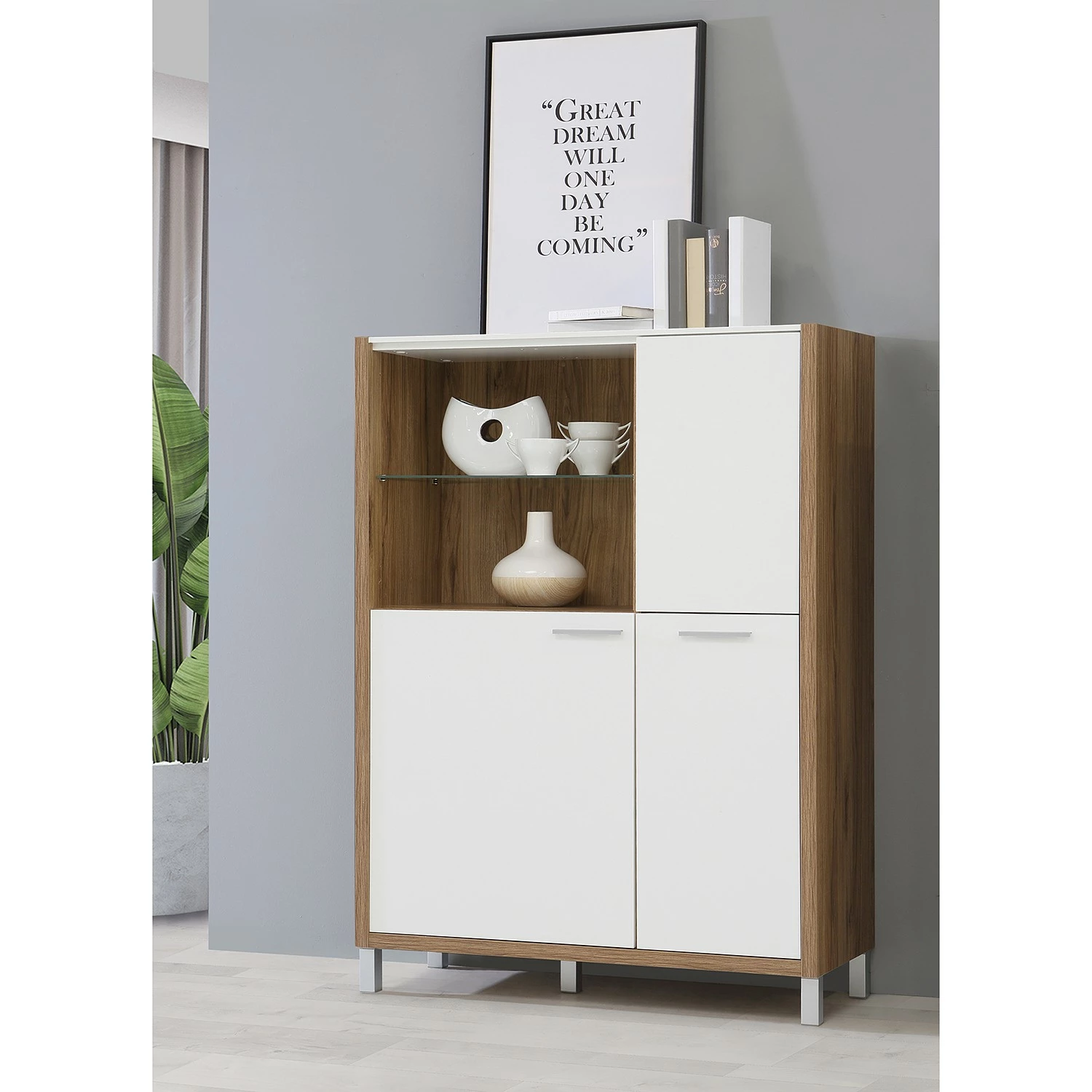 - Lieferumfang: Highboard ohne Beleuchtung & Dekoration