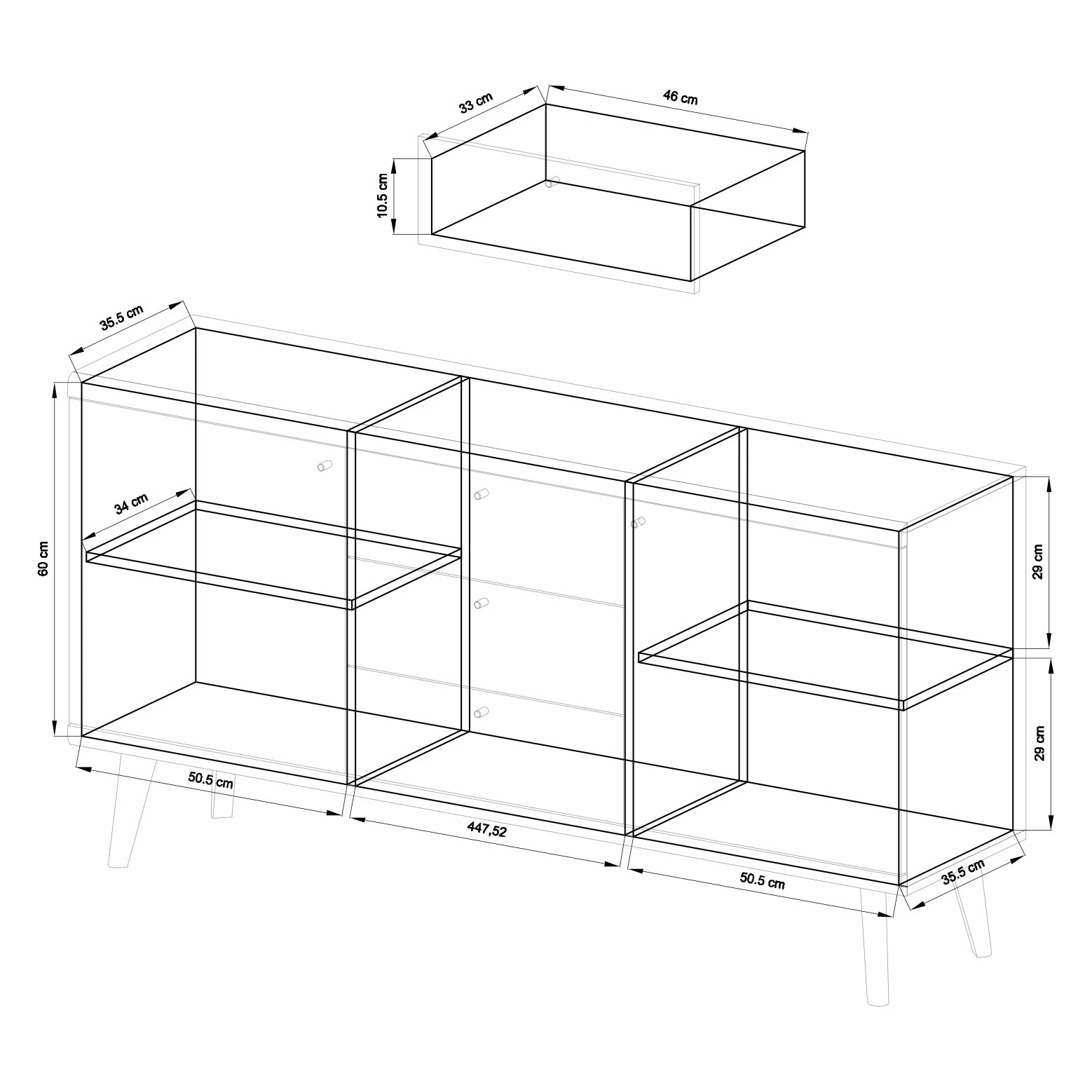 - Anzahl Schubladen: 3