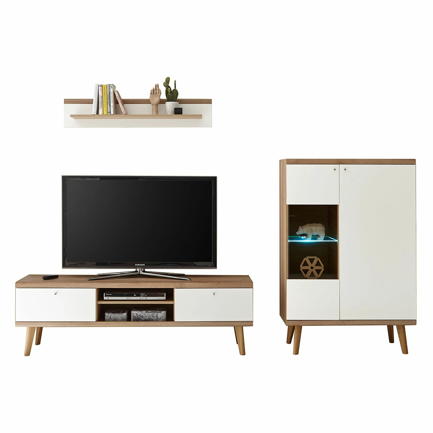- Wohnwand bestehend aus 1 Vitrinenschrank, 1 TV-Lowboard & 1 Wandboard