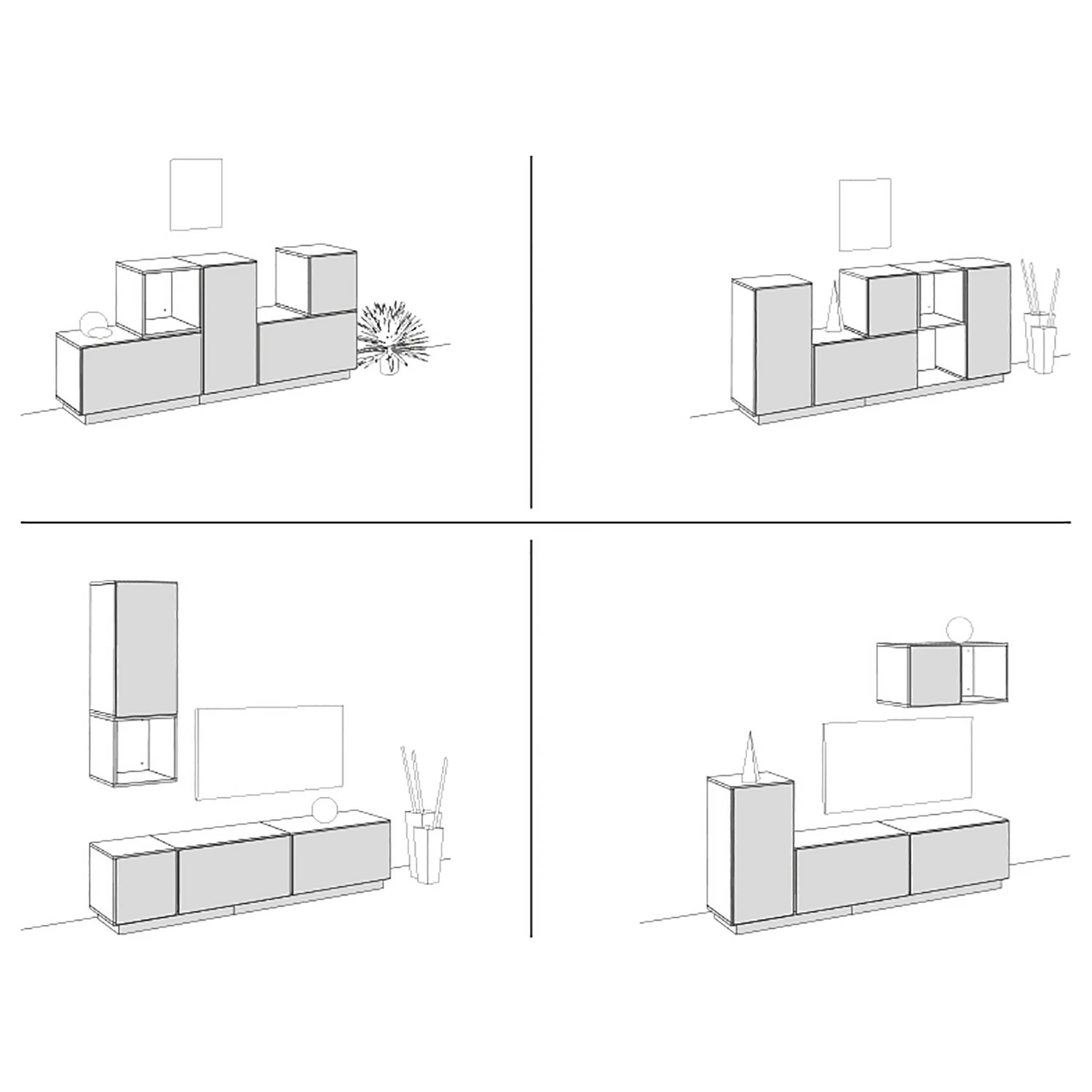 - Lieferumfang: 5 Boxen inkl. Sockel & Hängebeschlägen, ohne Dekoration