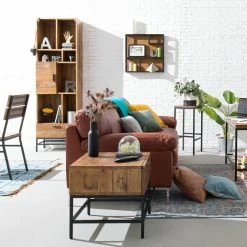 Ars manufacti Couchtisch Tamati (2er-Set) – Altholz Pinie / Metall – Pinie Dunkel / Schwarz
