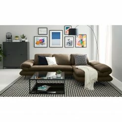 Loftscape Ecksofa Whaltey III – Antiklederlook – Dunkelbraun – Longchair davorstehend rechts