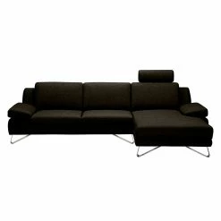 Loftscape Ecksofa Silvano – Webstoff Braun-Schwarz – Longchair davorstehend links – mit 1 Kopfstütze