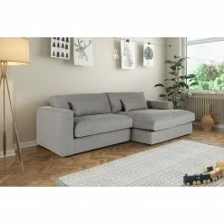 Loftscape Ecksofa Karrum – Chenille – Chenille Chaja: Hellgrau – Ottomane davorstehend rechts