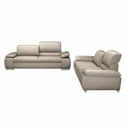 Fredriks Ecksofa Enzo – Strukturstoff Beige – Ottomane davorstehend links – Mit 2 Kopfstützen