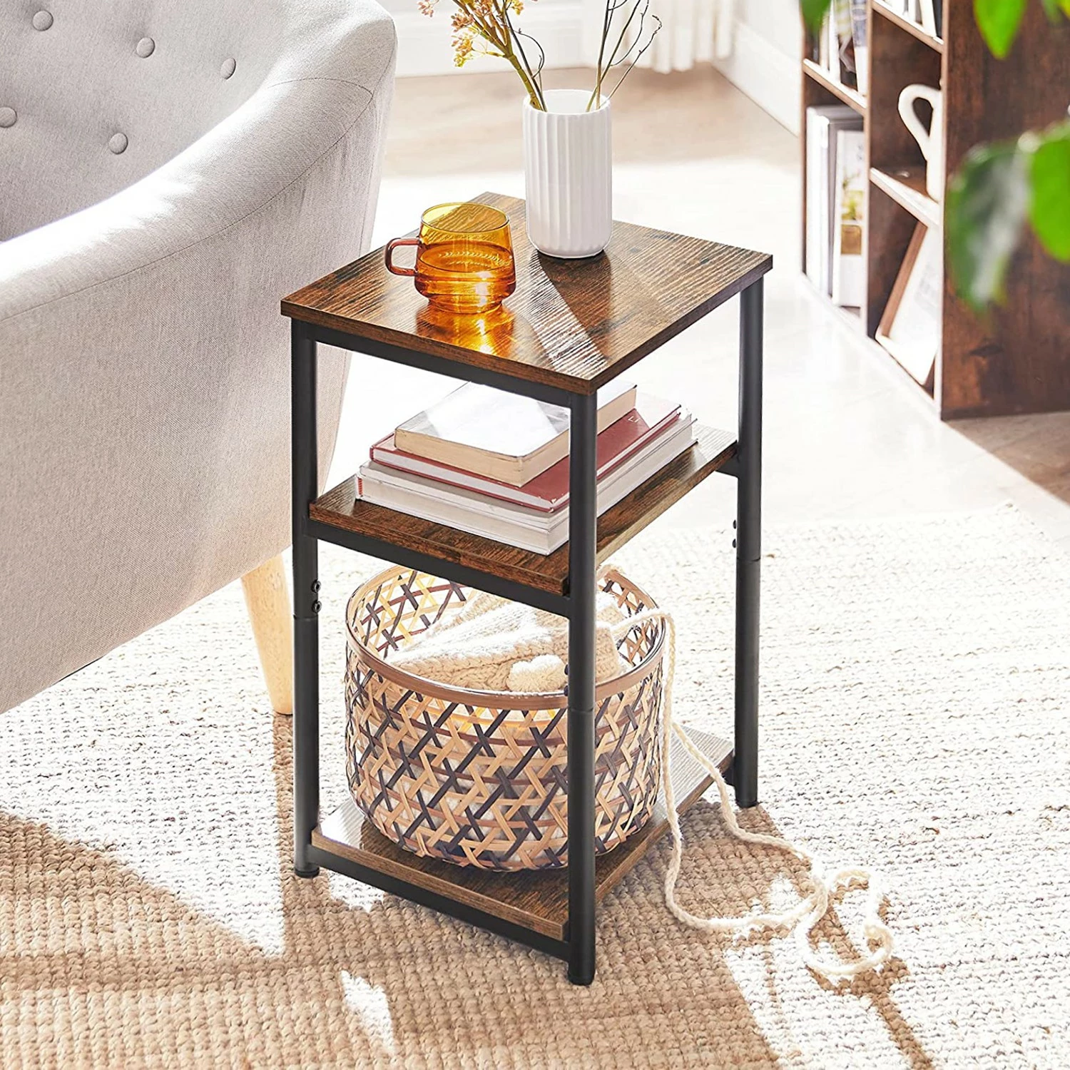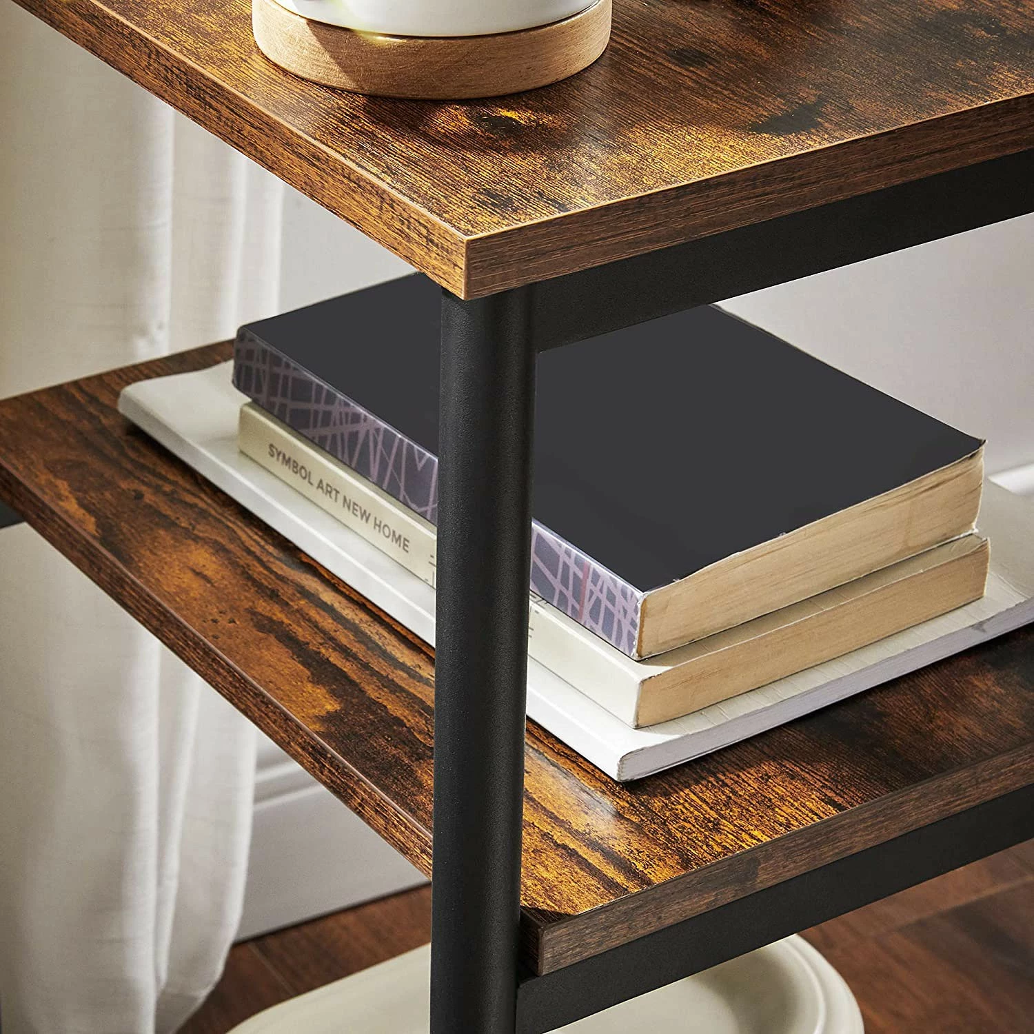 - Tischplatte & Ablagen: Braun