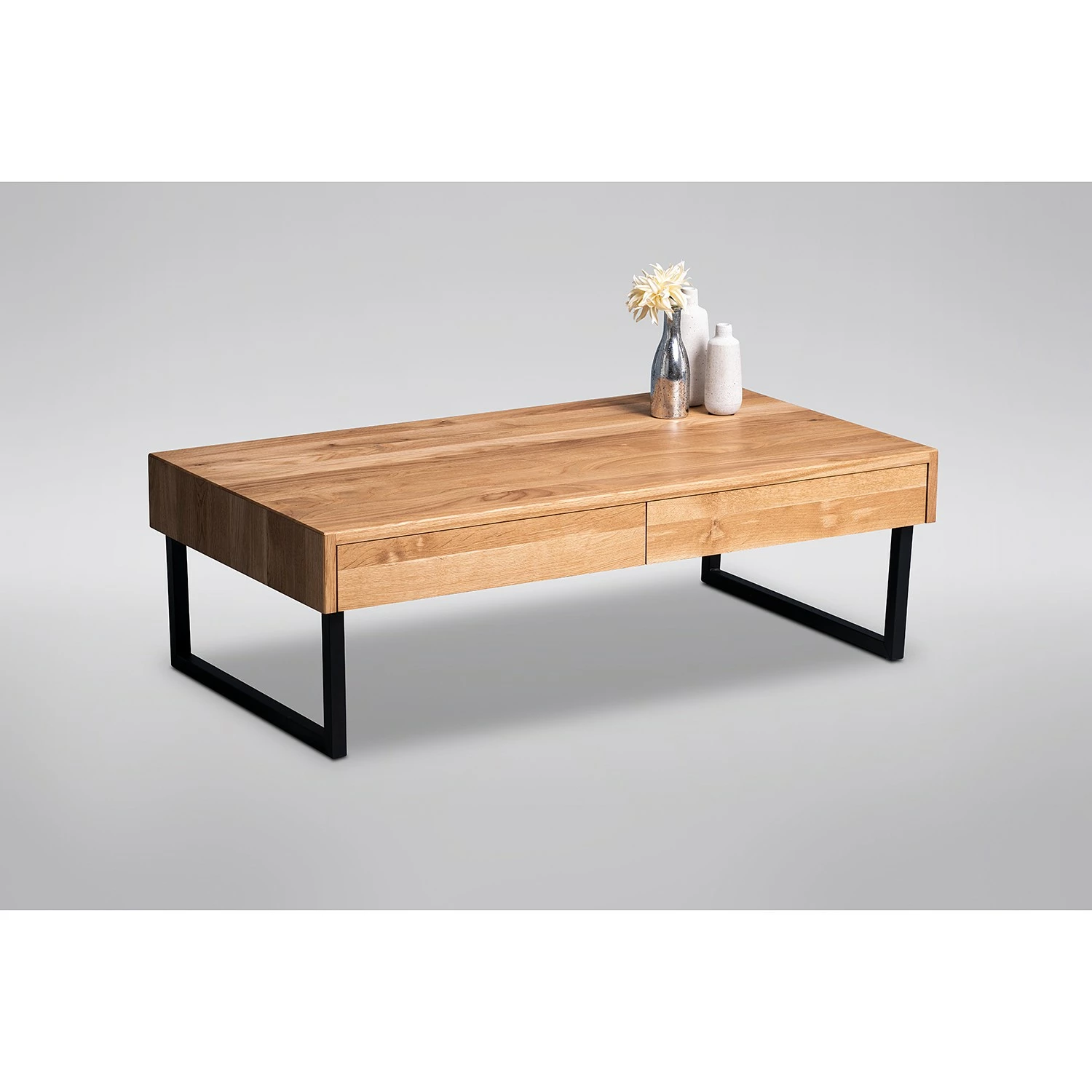 - Tischplatte: Massivholz Wildeiche, geölt