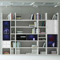 Loftscape XXL Regalwand Emporior VII – Hochglanz Weiß / Eiche Sonoma Dekor – Ohne Beleuchtung